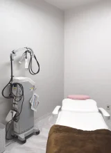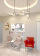 当院では一般皮膚科とは別に美容皮膚科エリアを設けています。綺麗になりたい気持ちに寄り添う、少しラグジュアリーな雰囲気です。
